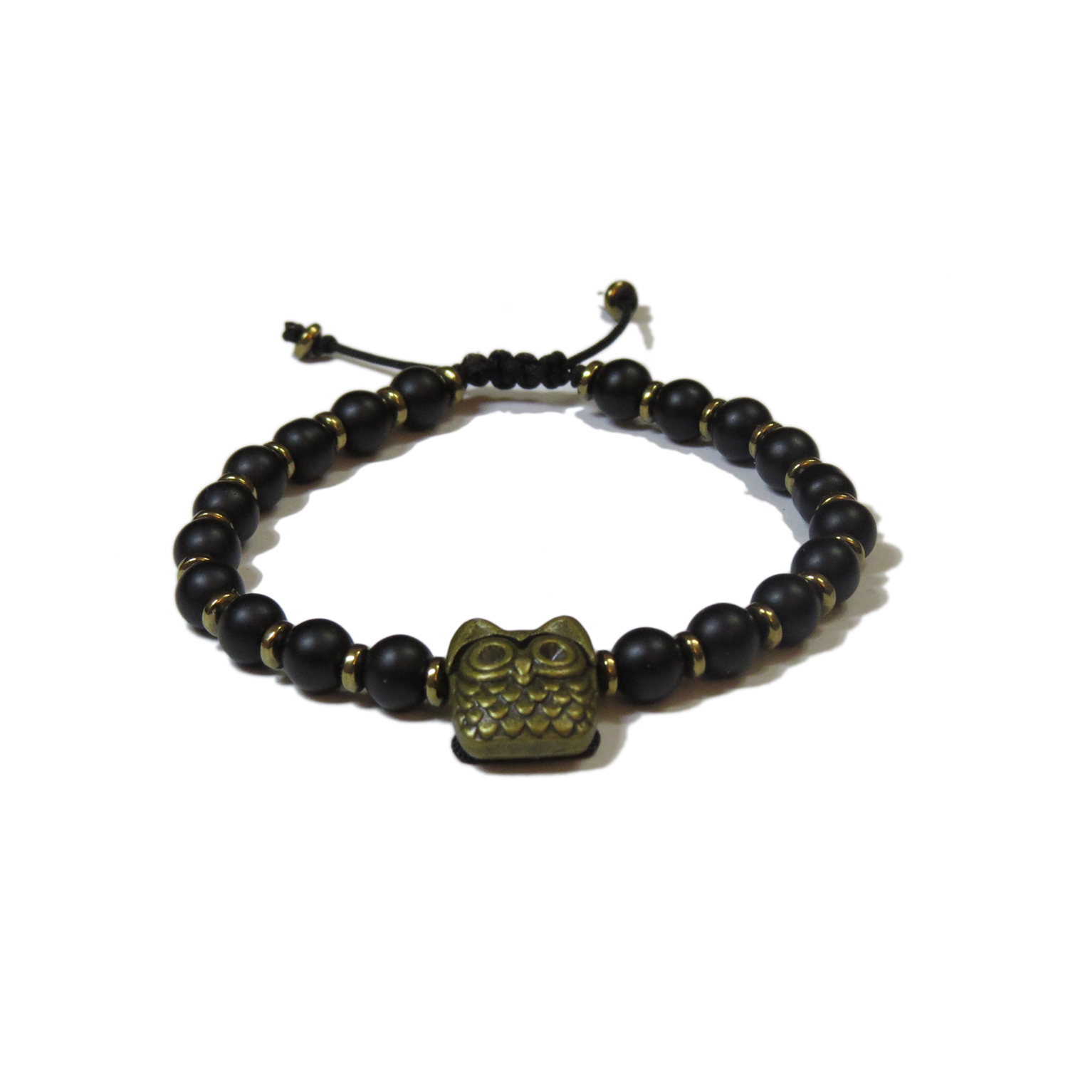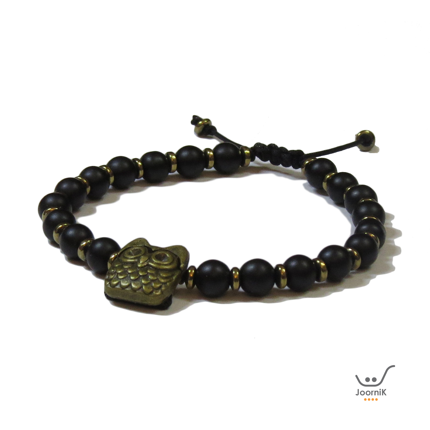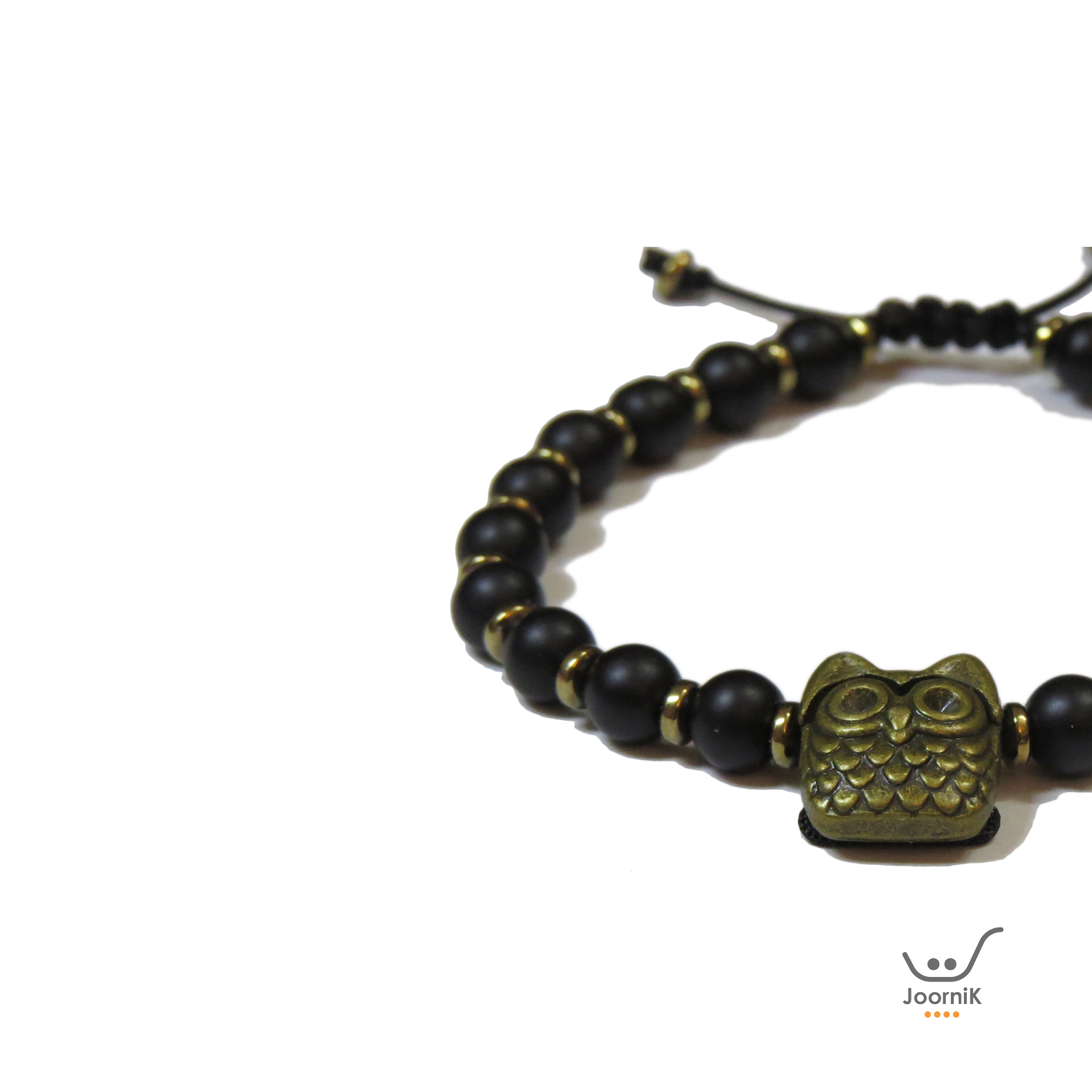 بوف یا جغد یا بهمن‌مرغ در فرهنگ زرتشتی، مارا واداشت که دستبندی با وجود این پرنده بسازیم .علت هم نشینی آویز جغد با سنگ مشکی هم پگاه رو یا شب رو بودن جغد است .