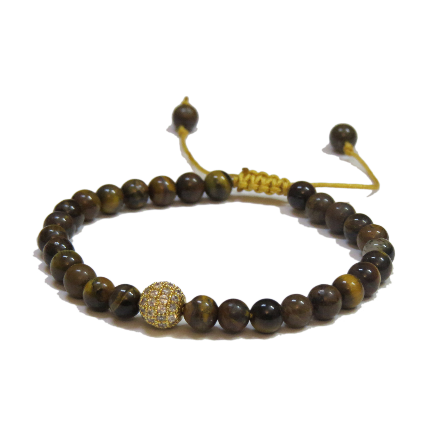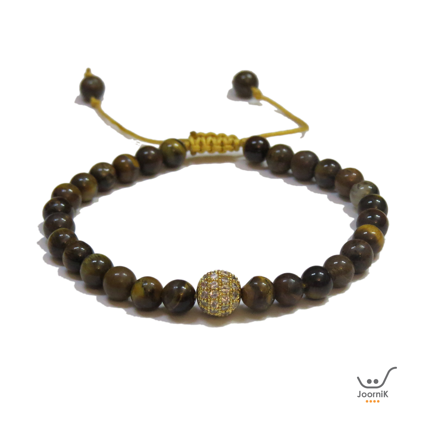 متریال استفاده شده در این دستبند سنگ چشم ببر تراش خرده  است که با مدال طلایی نگین دار خود طرحی زیبا و رسمی برای شما به همراه دارد .