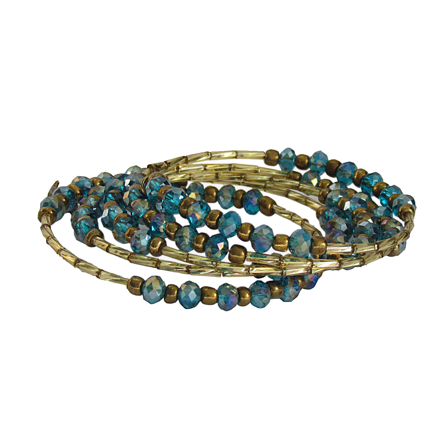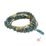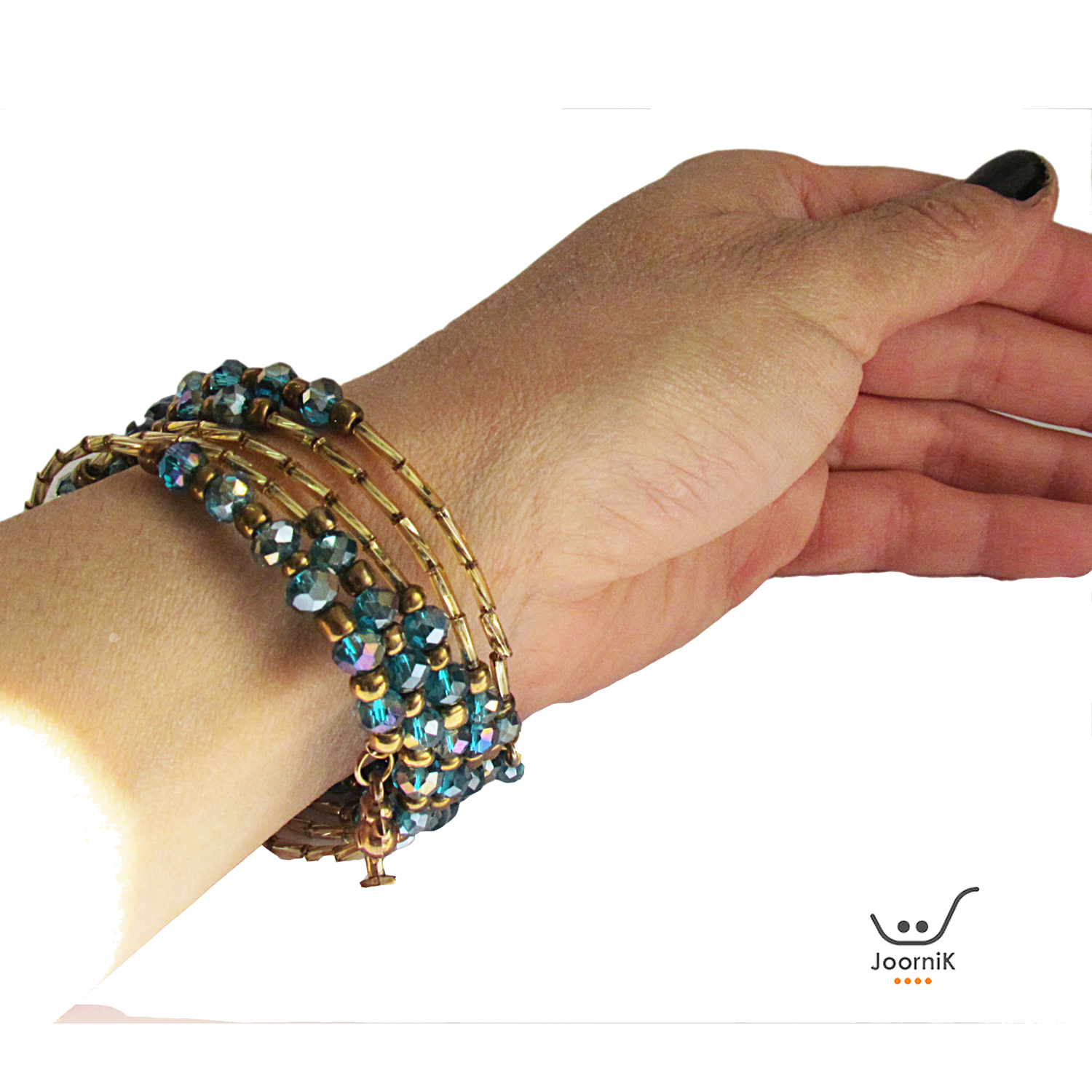 دستبند نیلگون، با ترکیب رنگ آبی نیلگون و رنگ طلایی جلوه ای بی نظیر به شما می دهد.در این دستبند از ملیله طلایی به همراه مهرههای تراش خورده آبی استفاده شده است و چون موجی به دور دستان شما تابیده می شود. این دستبند به دلیل ترکیب بندی رنگ بی نظیر با لباسهای روشن و تیره قابل ست شدن است.